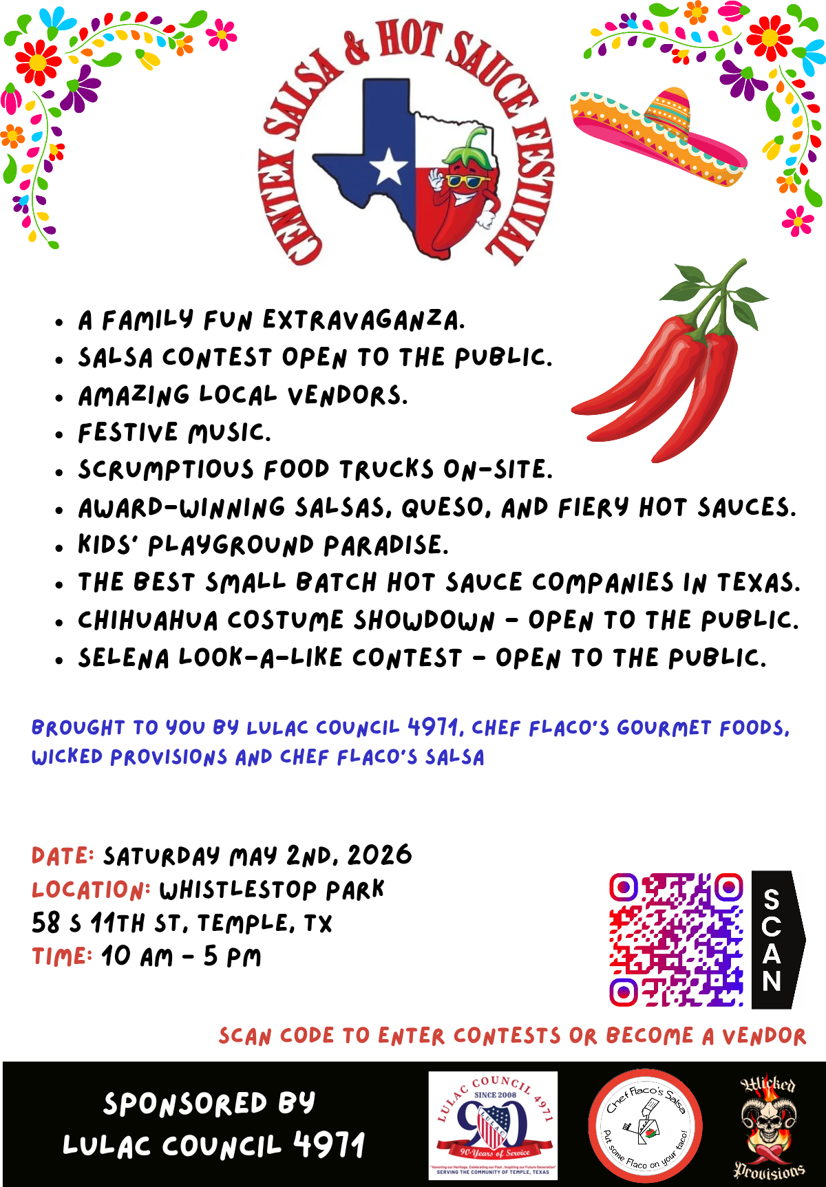 Whistlestop Park, 58 S 11th St, Temple, TX Whistlestop Park, 58 S, Texas, United StatesThis annual Temple event benefits the League of United Latin American Citizens (LULAC) Council 4971, which raises funds for local student scholarships. The festival is proudly hosted by Chef Flaco’s […]